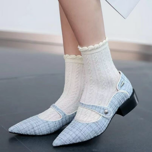 Blue Sweet & Fashion Floral Button Mary Jane Shoes for Women