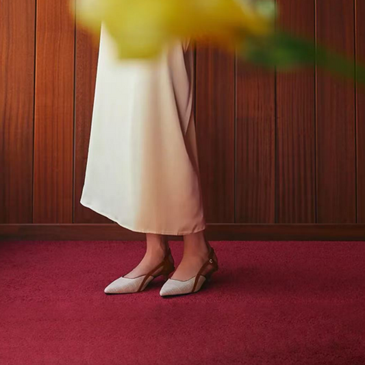 Beige Elegant Criss-Cross Strap Slingback Kitten Heel Fashion Shoes for Women