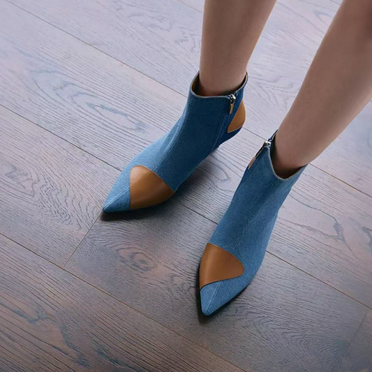 Blue Denim Fashion & Cool Trichromatic Splicing Ankle Booties Stiletto Shoes for Women